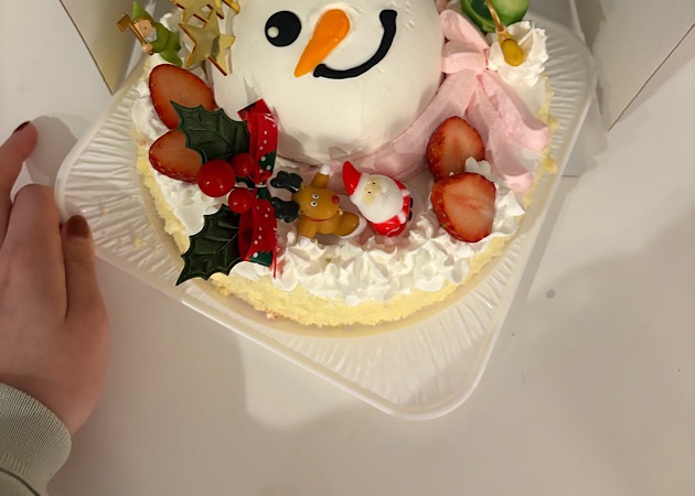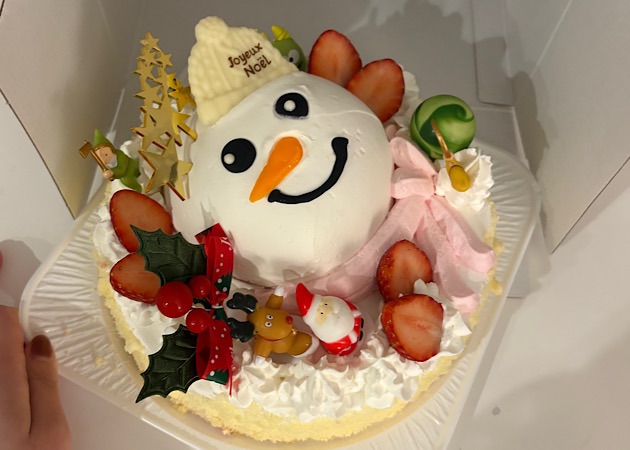 2025年のクリスマスは琴似のスイーツのお店『金の魔女』さんのスノーマンのケーキにしました!