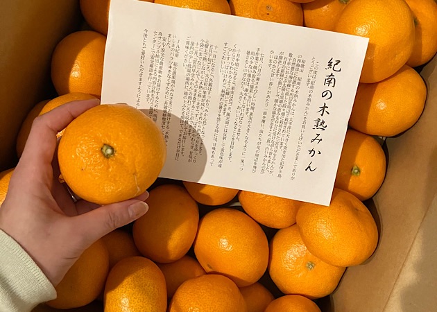 和歌山県の紀南産、木熟みかん「天」と書かれていました。木熟みかんというのが、みかんの木の上でギリギリまで収穫時期を遅らせて、熟成させて栽培したみかんのことらしいです。ジューシーで甘いのが特徴とのこと。